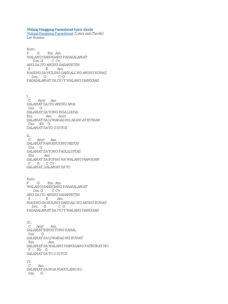Salamat espiritung banal Salamat sa liwanag ng buhay Salamat sa walang hanggang patnubay mo Salamat sayo o diyos Verse 4 Salamat sa mga magulang ko Salamat sa mga kapatid ko Salamat sa lahat ng kaibigan ko Salamat salamat sayo Koro Walang hanggang pasasa-lamat Ang sa iyo aming sasambitin Maging sa huling sandali ng aming buhay Pasasala. Prime Start your 7 Day Free Trial Go Pro.
