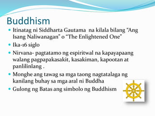 Ang tagapagtatag ng Budismo na si Siddhartha Guatama ay ipinanganak na isang dugong-bughaw sa India noong 600 BC. Banal na pag ibig pag ikaw ang nukal sa tapat na puso ng sinot alinman imbit taong gubat maralitat mangmang nagiging dakila at iginagalang. Ang isang tao na nakapasok na sa Nirvana ay nakalaya na sa paulit-ulit na pagsilang at pagkamatay o tinatawag na reinkarnasyon bagamat sa isang impersonal na paraan.